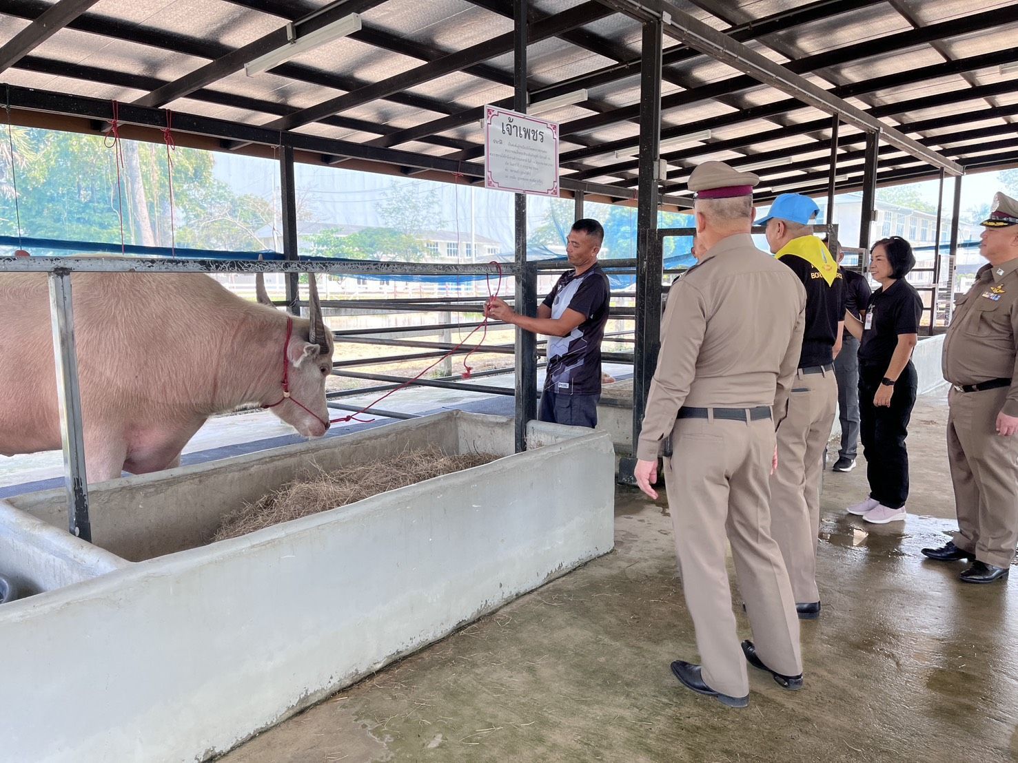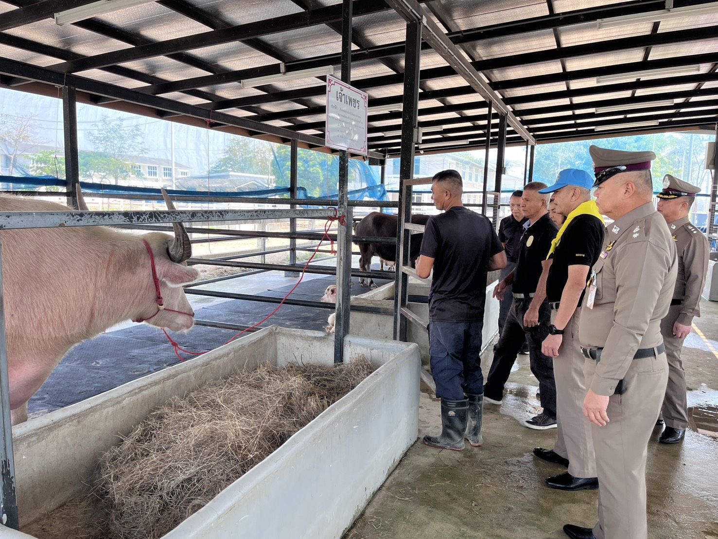 พล.ต.ต.นรินทร์ คำแก่น ผบก.กฝ.บช.ตชด. เดินทางไปตรวจเยี่ยมโครงการอนุรักษ์และพัฒนากระบือไทย ศูนย์ฝึกจิตอาสา ภาค 1 ค่ายพระรามหก อ.ชะอำ จว.เพชรบุรี โดยมี พ.ต.อ.ปาริชาติ บรรจงปรุ ผกก.1 บก.กฝ.บช.ตชด และข้าราชการตำรวจในสังกัด บก.กฝ.บช.ตชด. ให้การต้อนรับ และนำเยี่ยมชมกระบือพระราชทานในโครงการอนุรักษ์และพัฒนากระบือไทยทั้ง 11 ตัว