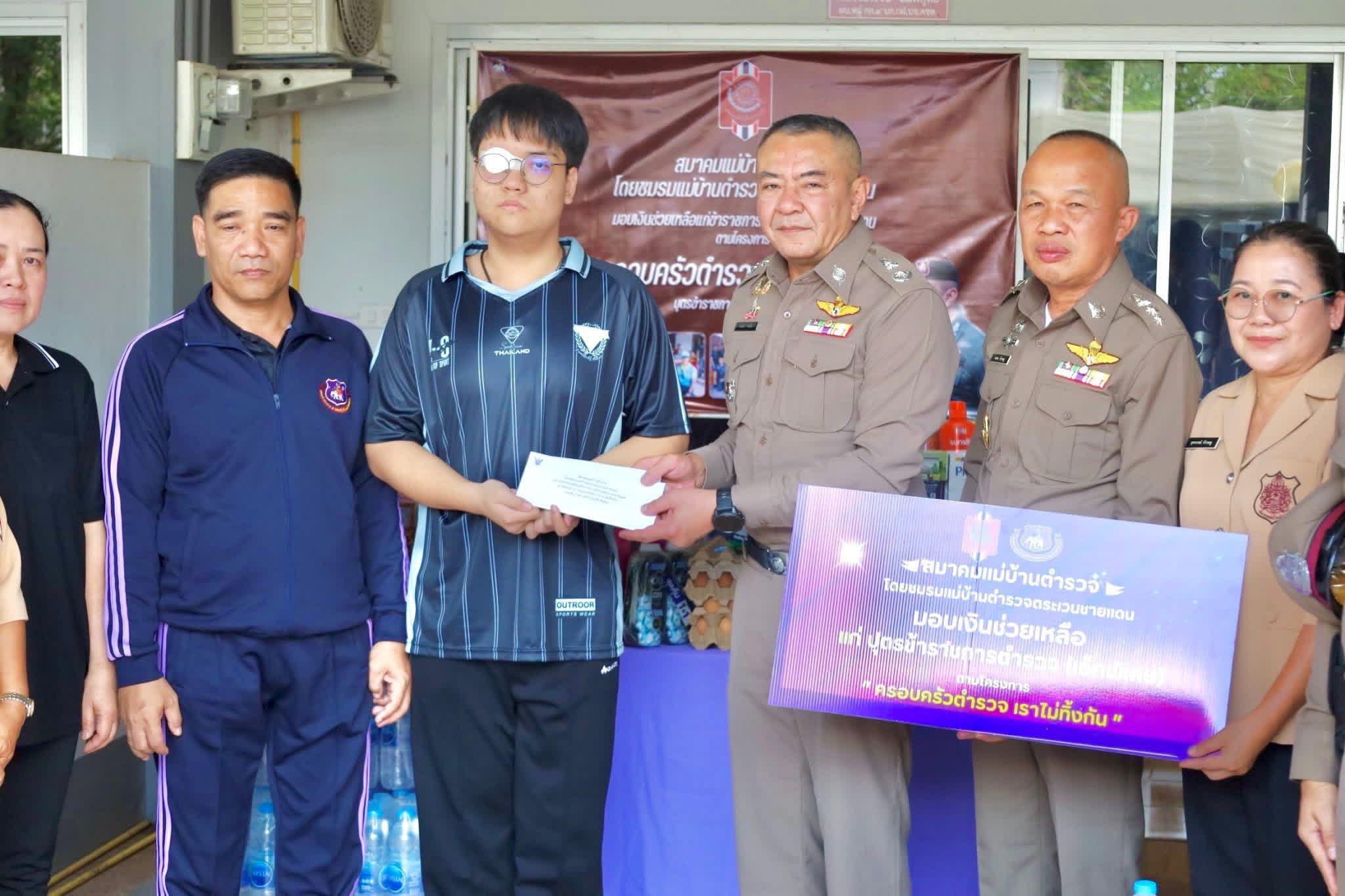 เมื่อ 6 มี.ค.69 เวลา 13.00 น. พล.ต.ต.นรินทร์ คำแก่น ผบก.กฝ.บช.ตชด. ได้เดินทางไปตรวจเยี่ยมหน่วย กก.4 บก.กฝ.บช.ตชด. โดยมี ว่าที่ พ.ต.อ.ธนพล ท้าวหนู ผกก.4 บก.กฝ.บช.ตชด., พ.ต.อ.ณวัฒน์ ศุกลรัตน์ ผกก.ตชด.24, พ.ต.ท.พลสันติ์ คมขาว รอง ผกก.4 บก.กฝ.บช.ตชด., พ.ต.ท.เกรียงไกร สิตะเสน รอง ผกก.4 บก.กฝ.บช.ตชด. พร้อมข้าราชการตำรวจในสังกัดให้การต้อนรับและมอบสิ่งของและเงินช่วยเหลือให้แก่ นาย อาคม นิ่มพิสุทธิ์ บุตรข้าราชการตำรวจ (เด็กพิเศษ) ตามโครงการ “ครอบครัวตำรวจ เราไม่ทิ้งกัน” จัดขึ้นโดยสมาคมแม่บ้านตำรวจ